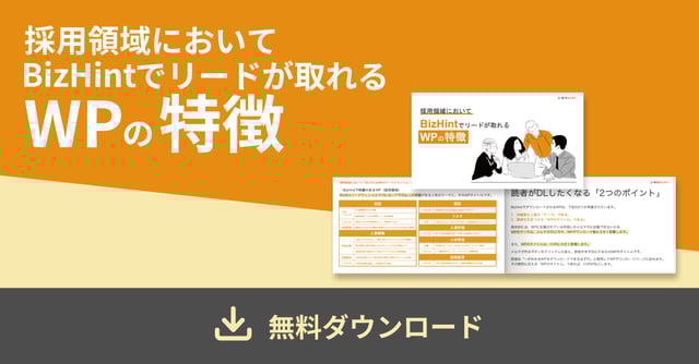 採用領域においてリードが取れるWPの特徴とは? BizHint企画運営部 2023年6月13日 BizHintでは、多くのBtoB系の企業様にリード獲得のご支援をしております。そこで今回は、人材採用をテーマとした際に、リード獲得効率が良い資料はどのようなものなのか、まとめました。 是非、今後の資料制作にお役立ていただけますと幸いです。 概要 採用領域において「DLされるWPのテーマとタイトル」は何か? BizHintで実績のあるWP DLされるWPとは? 読者がダウンロードしたくなる「2つのポイント」 BizHintについて フォームに必要事項を入力し、「送信」を押してください。フォーム送信いただいたメールアドレス宛てに資料をお送りいたします。 お役立ち資料 記事をシェア Facebookにシェア Twitterにシェア